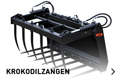 Beim Silieren von Gras oder Mais ist die Grüngutgabel ein unentbehrliches Anbaugerät. JST bietet sowohl eine Grüngutgabel mit hydraulischer Seitenaufklappung als auch eine Wurzelgabel als etwas günstigere Alternative an.