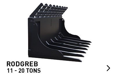 Rodgreben er lavet til gummiged / læssemaskine i størrelsen 11 – 20,5 tons, og leveres som standard med Volvo BM fæste, men kan også leveres med andre beslag, fx JST/Viby kileskifte, Cat SW2007, Cat SW2008, Cat Fusion, Volvo L150-180.